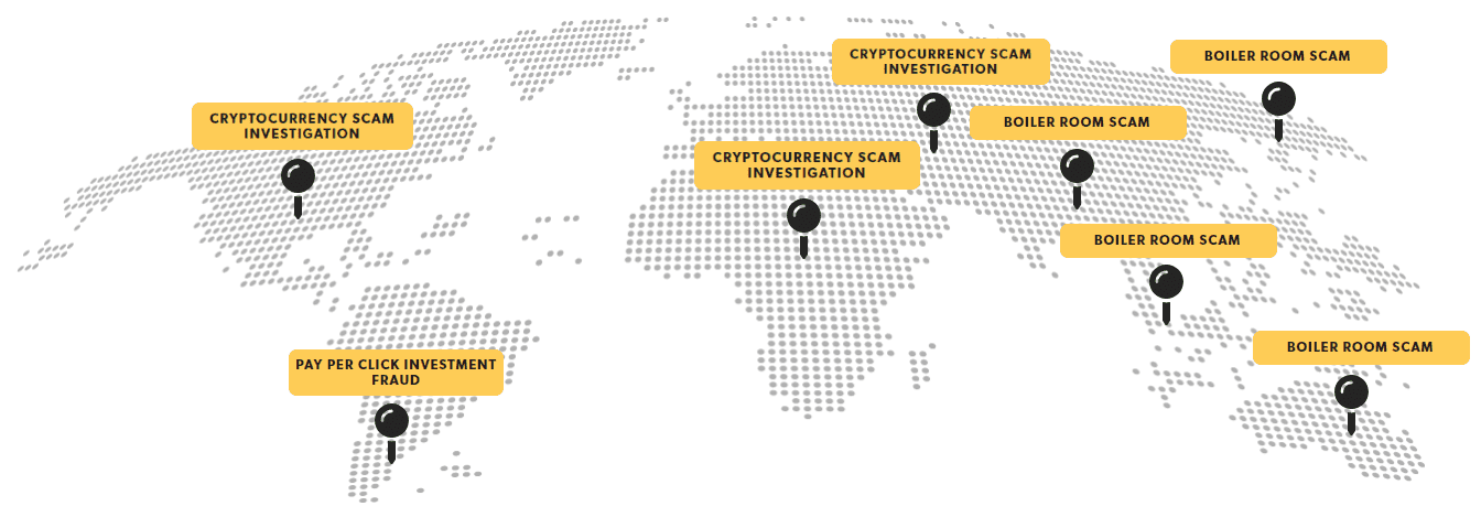 Solvioners is headquartered in Zug, Switzerland, with offices and representatives located across the globe in the UK, Europe, USA, Australia, Canada, and South East Asia. This strategic presence allows us to effectively combat cybercrime, which thrives in these regions known as the world’s largest hub for various types of illicit online activities.